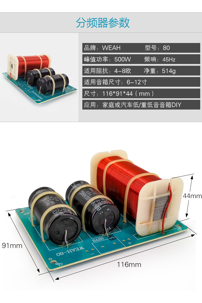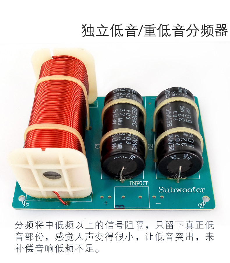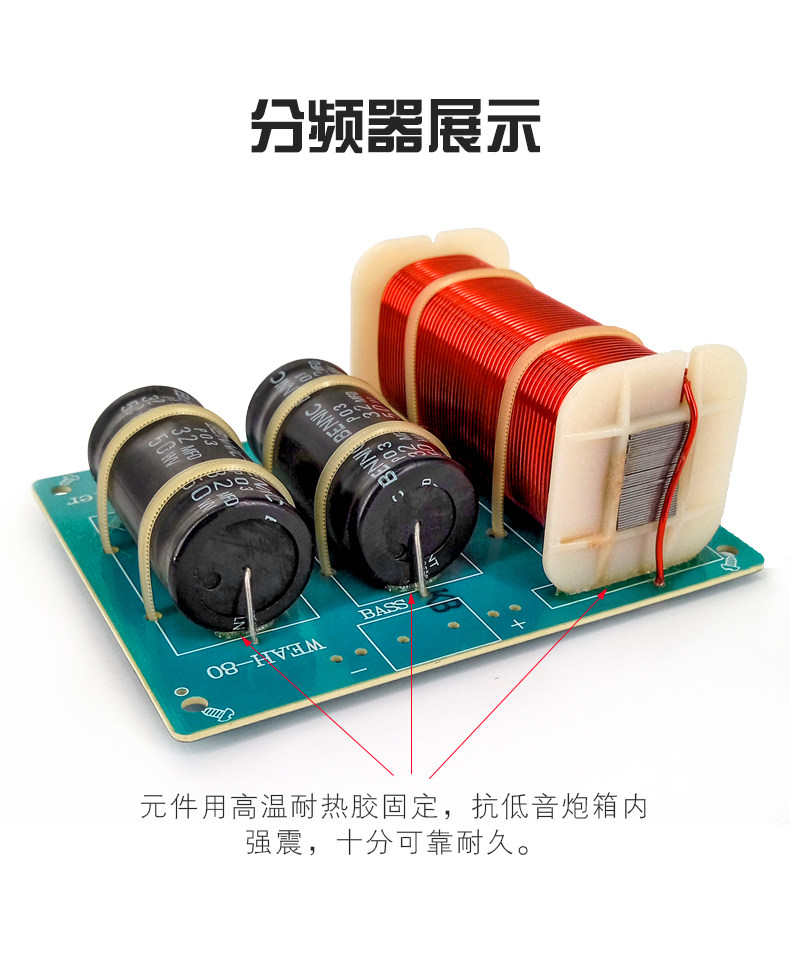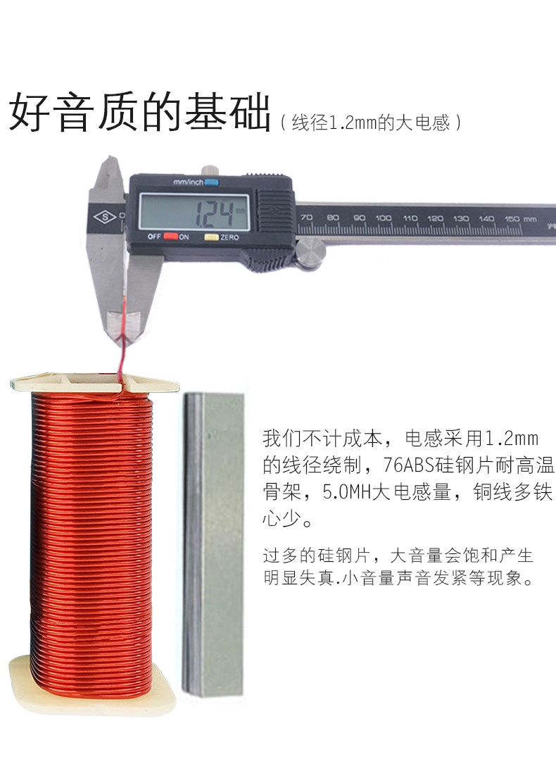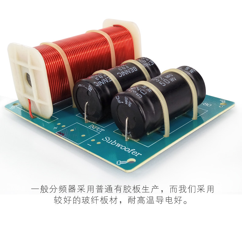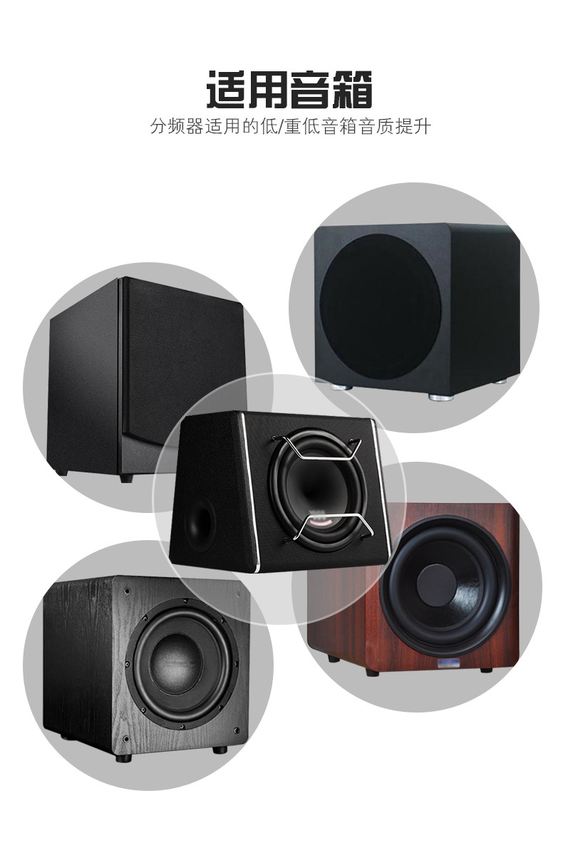 Ингредиенты: индуктивность использует хорошую обмотку QA -окисленного и медного QA, а катушка сабвуфера используется с полным диаметром 1,2 мм.76abs скелет5,0mh высокий объем!емкость, 2 32UF50WV Параллель, можно увидеть сложным и большим.Дизайн разумный, качество изготовления деликатно, внешний вид изысканный, а качество звука превосходно.