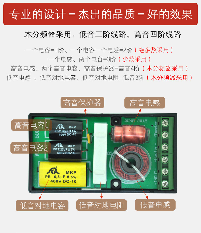 Роль частотного деления состоит в том, чтобы отделить смешанные аудиосигналы на высокие, средние и басовые детали, а затем отправить их в соответствующие высокие, средние и басовые динамики на замену, чтобы получить цель улучшения качества звука ПолемС помощью материала дизайн линии является разумным.