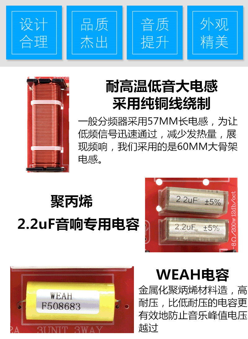 Вся индуктивность использует анаэробные линии медной краски, конденсаторы представляют собой металлические мембранные конденсаторы, высокочастотный фарфоровый сопротивление с высокой силой, разумный дизайн, достаточное использование!Чистый вес: 322 грамма, одна цена, бесплатная доставка!