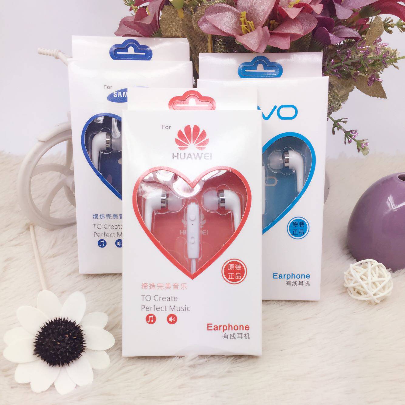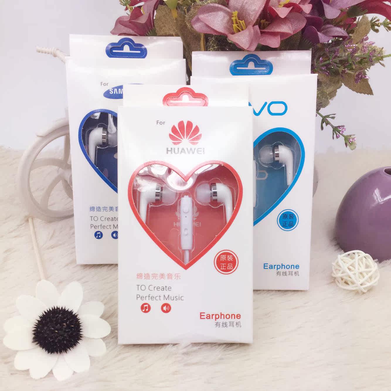 Huawei, samsung, vivo, оригинальный смартфон, трехмерные наушники, беруши, проводное управление
