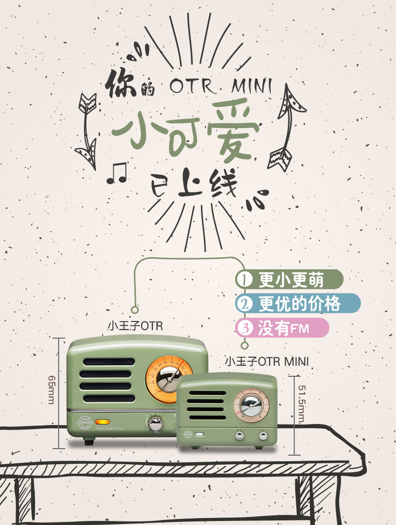 猫王音响 Элвис Принц OTR Mini Retro Green Bluetoot