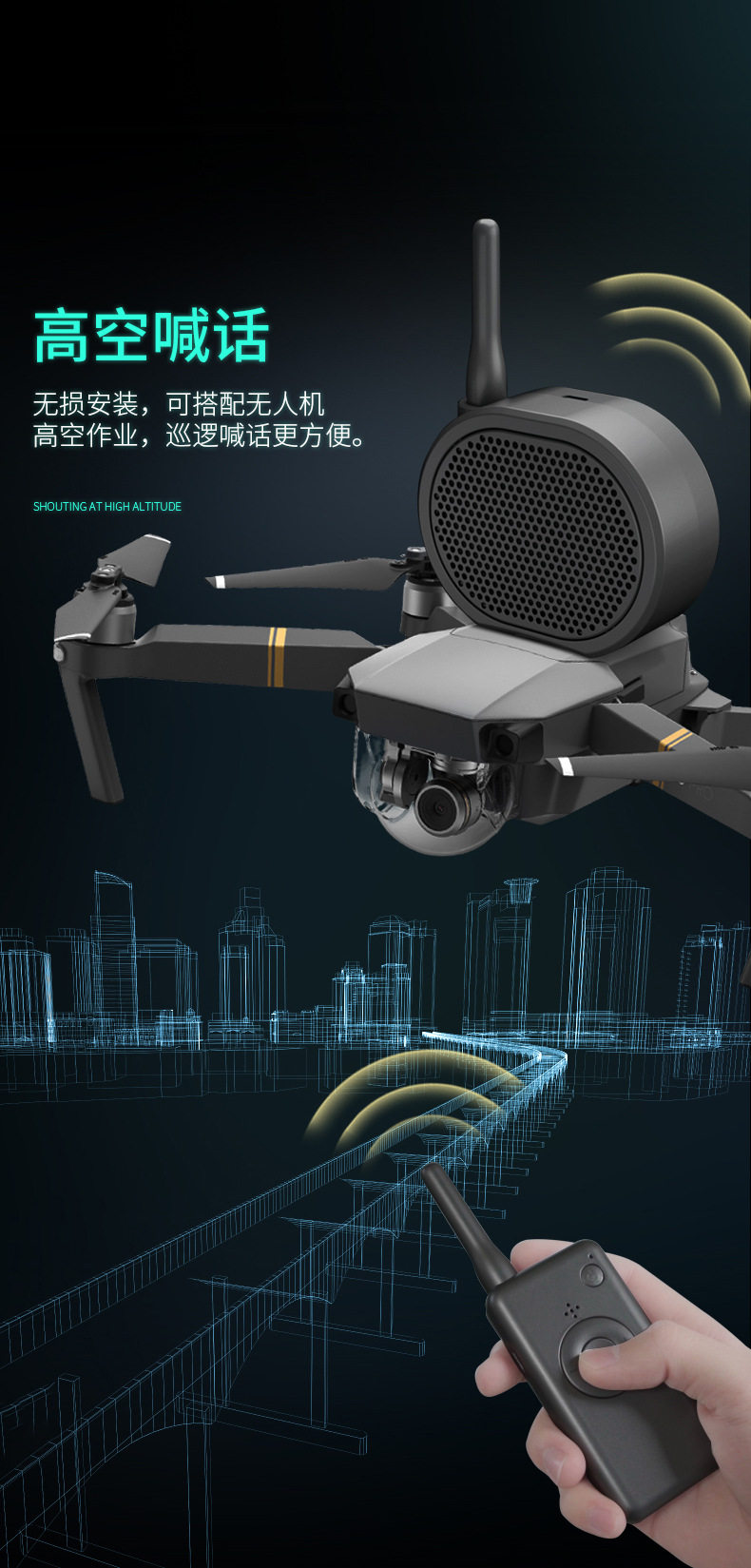 Подходит для DJI DJI MAVIC AIR 2/2S MINI 2 Общие 1000M Sring Device High -высокая громкоговоритель