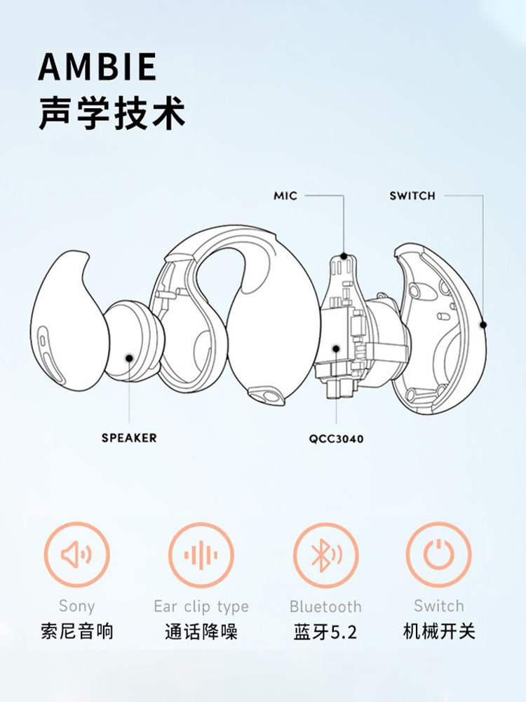 Ambie Bluetooth костная проводимость открытые наушники беспроводные зажимы для ушей для бега водонепроницаемые спортивные наушники без вкладышей AM-TW01