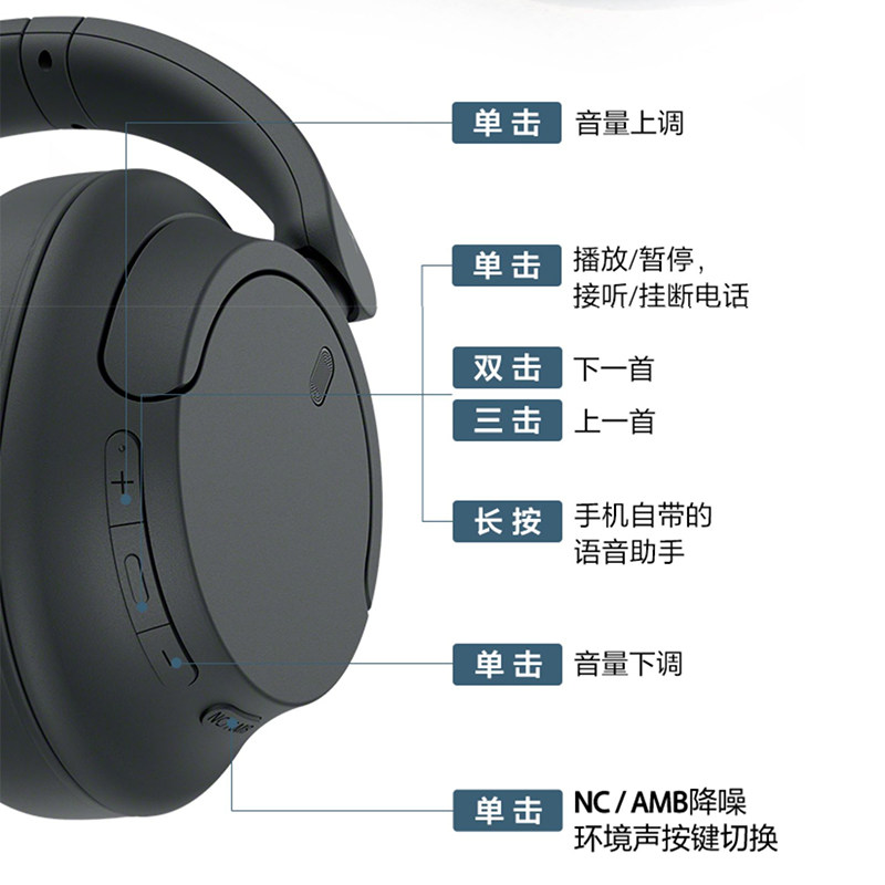 Sony Sony Head ношение активного шумоподавления Bass Buseless Bluetooth -гарнитура