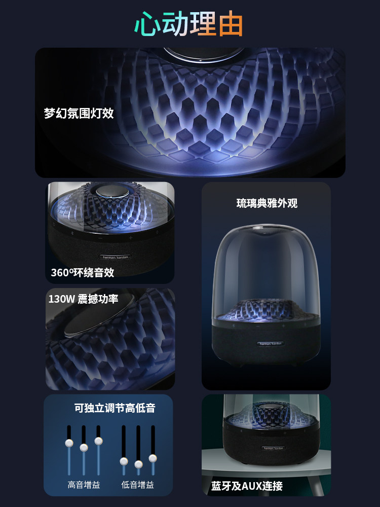 Harmancaton Music Liuli 4th -Generation Audio Bluetooth -динамик Aura Studio3 Три платиновая коллекция