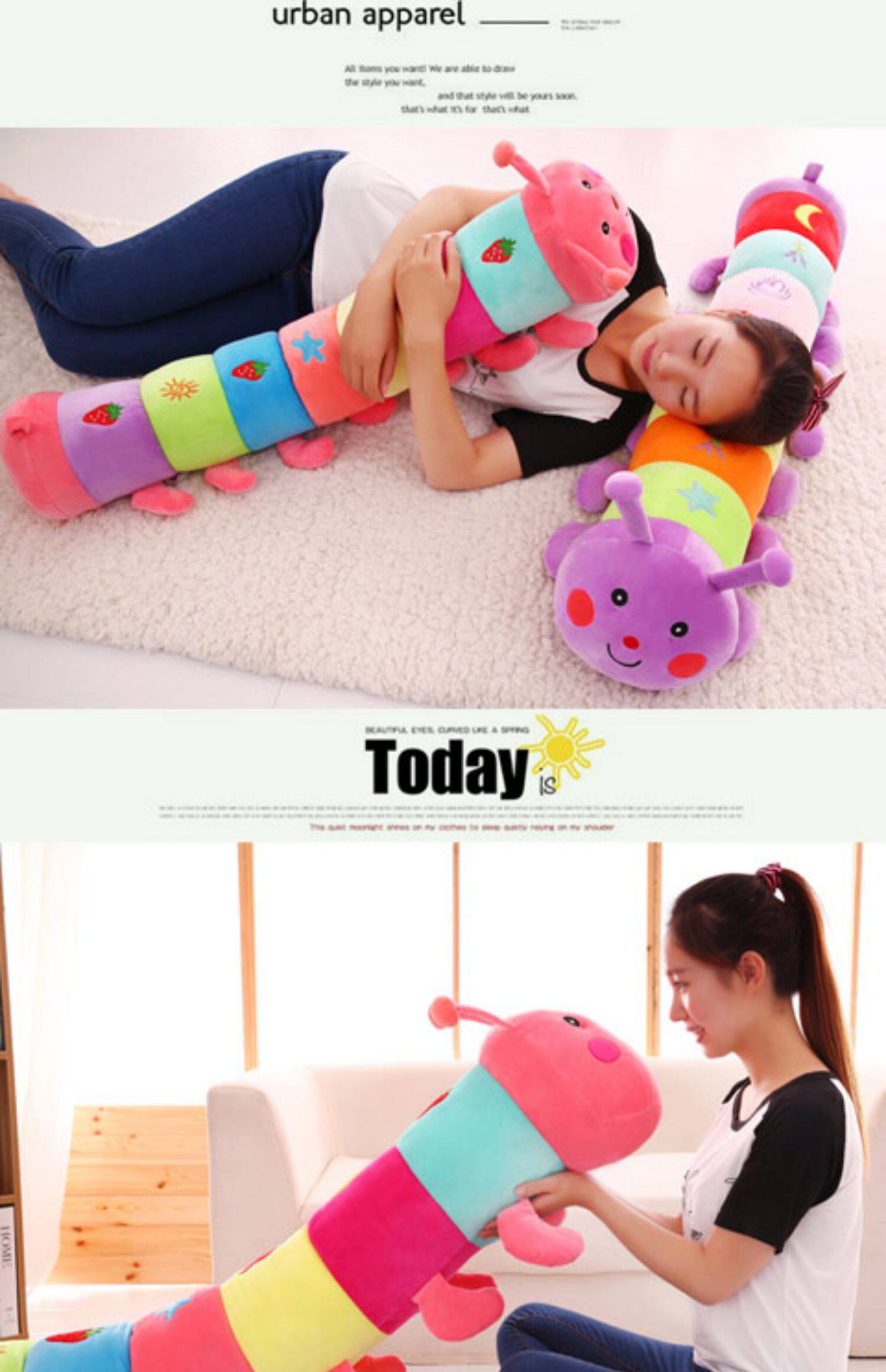 Разноцветная плюшевая игрушка для сна, милая подушка, тряпичная кукла, гусеница