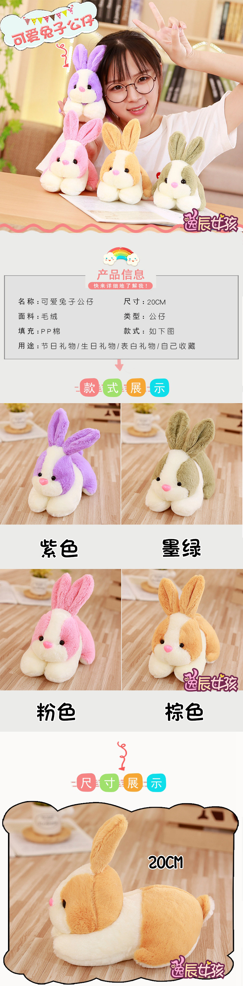 | Цвет: | Розовый кролик, Сиреневый кролик, Светло -коричневый кролик, Зеленый кролик |