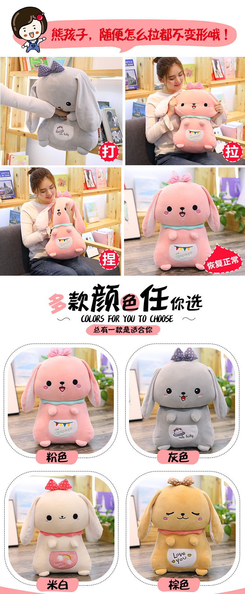 Плюшевый кролик, игрушка для сна, милая подушка, кукла, Южная Корея