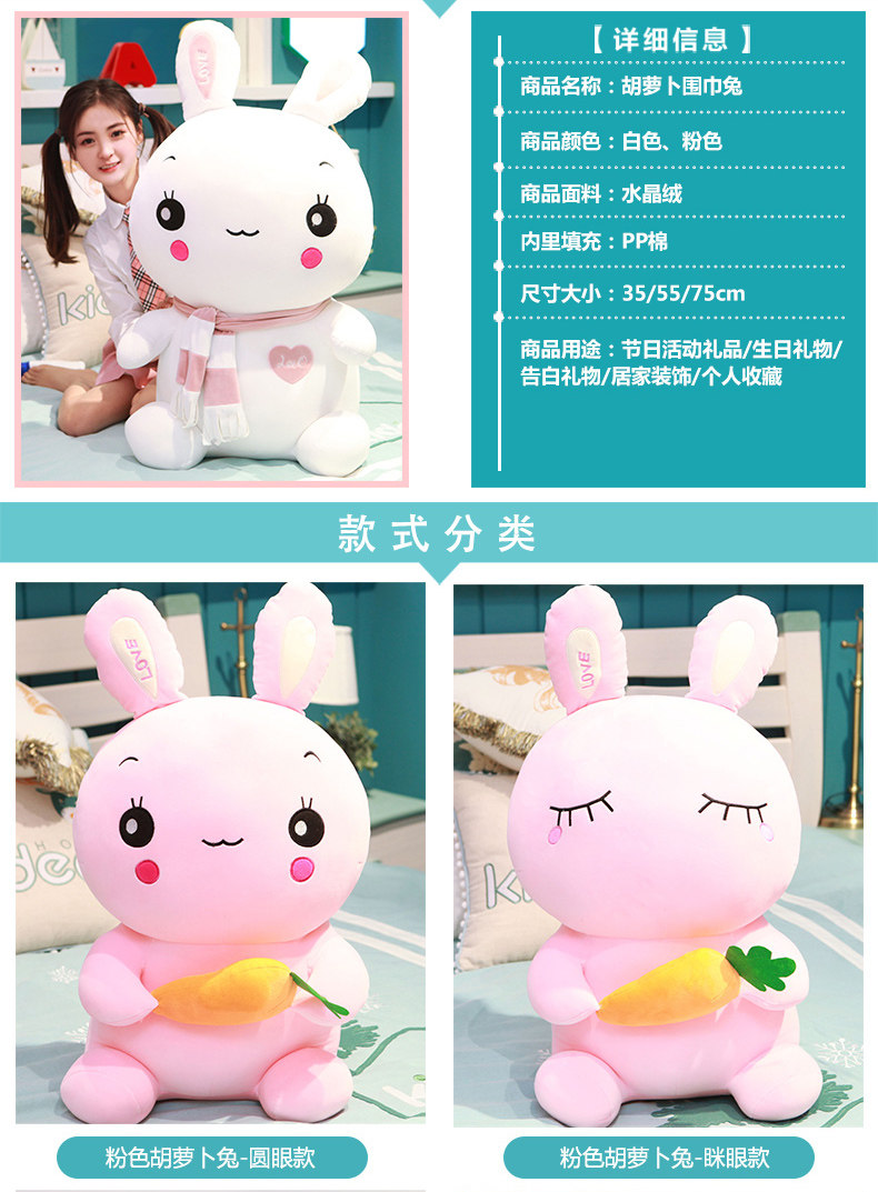 Мультяшная плюшевая игрушка, кролик, тряпичная кукла для сна, подушка для обнимания