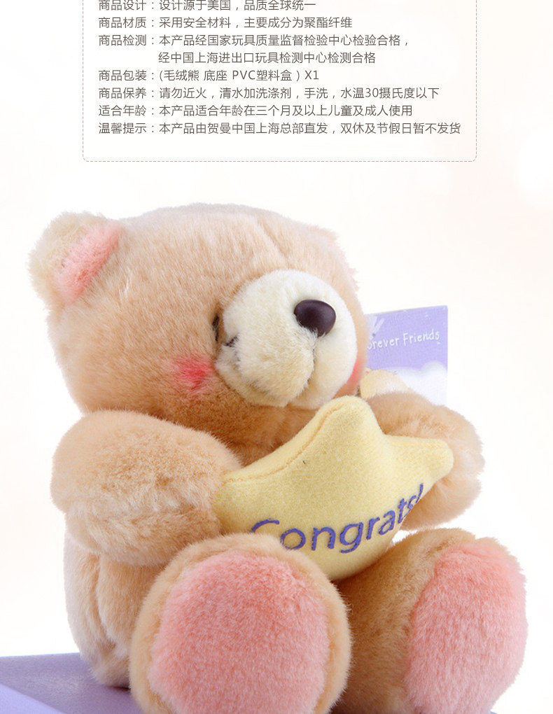 | Цвет: | Лучший друг (4,5 -дюймовый медведь в Европе и Соединенных Штатах), Лучший партнер (европейский и американский оригинальный 4,5 -дюймовый медведь), Happy (европейский и американский оригинальный 4,5 -дюймовый медведь) |
