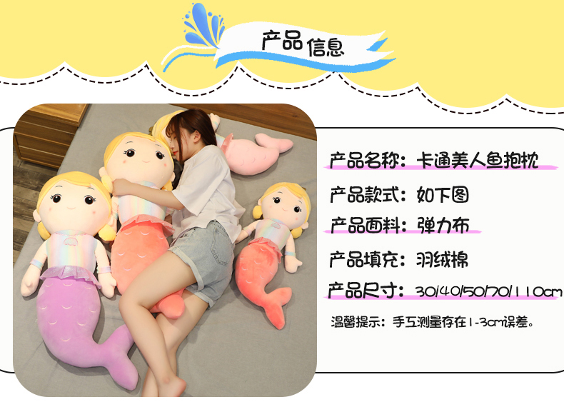 Плюшевая игрушка, большая тряпичная кукла для принцессы, подушка для сна, русалка