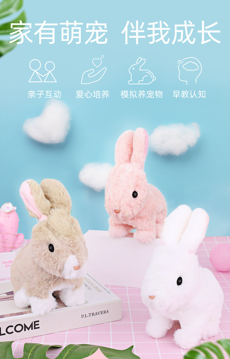 Реалистичный электрический кролик, плюшевая игрушка, кукла, домашний питомец, белый кролик, подарок на день рождения