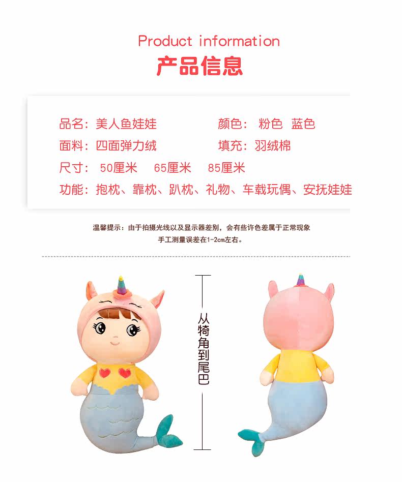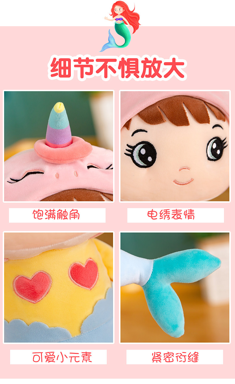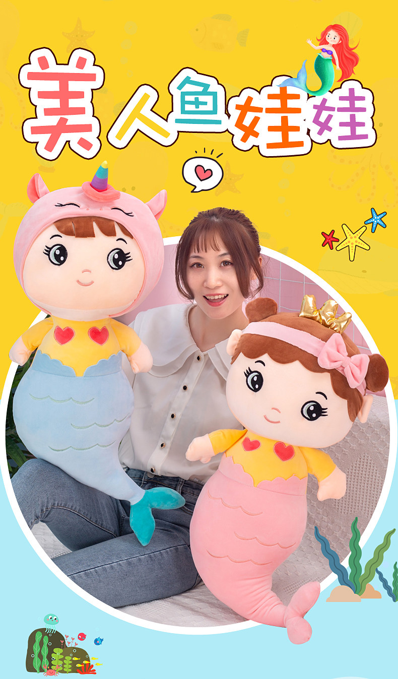 Милая подушка, плюшевая детская игрушка, тряпичная кукла, русалка