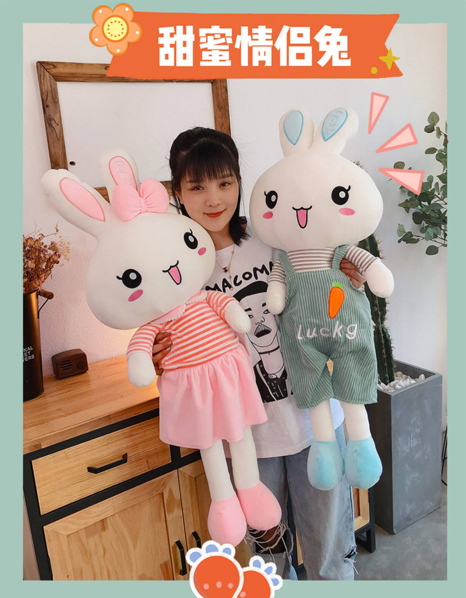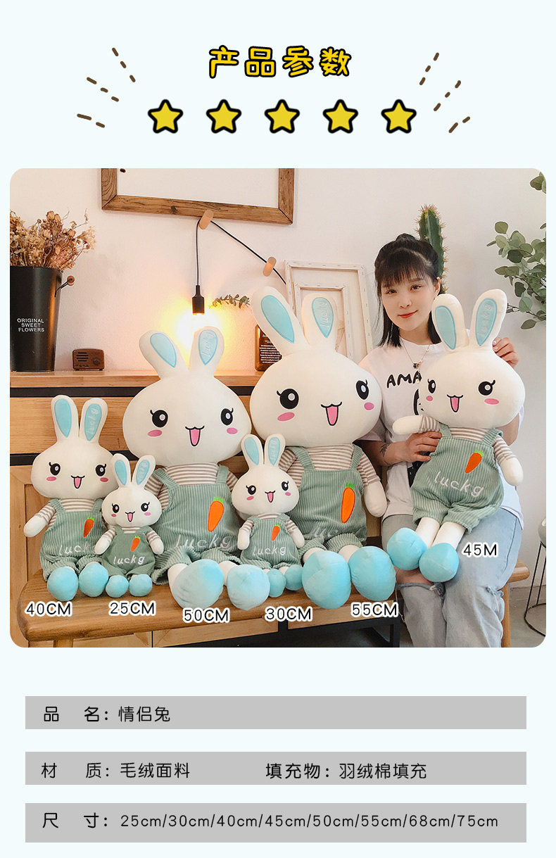 Милый плюшевый кролик, игрушка, подушка для сна, тряпичная кукла, для влюбленных, белый кролик