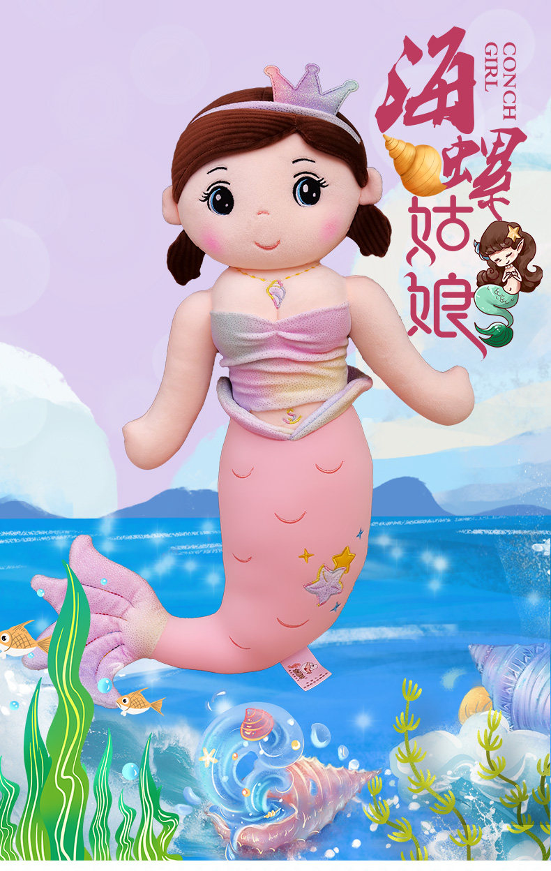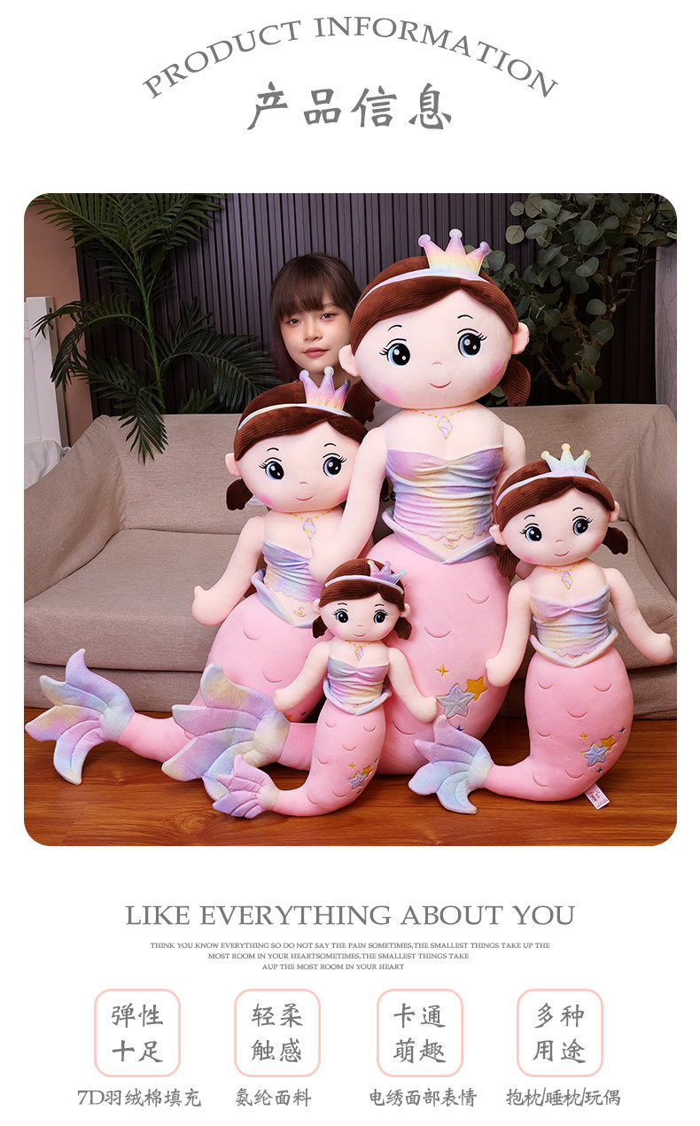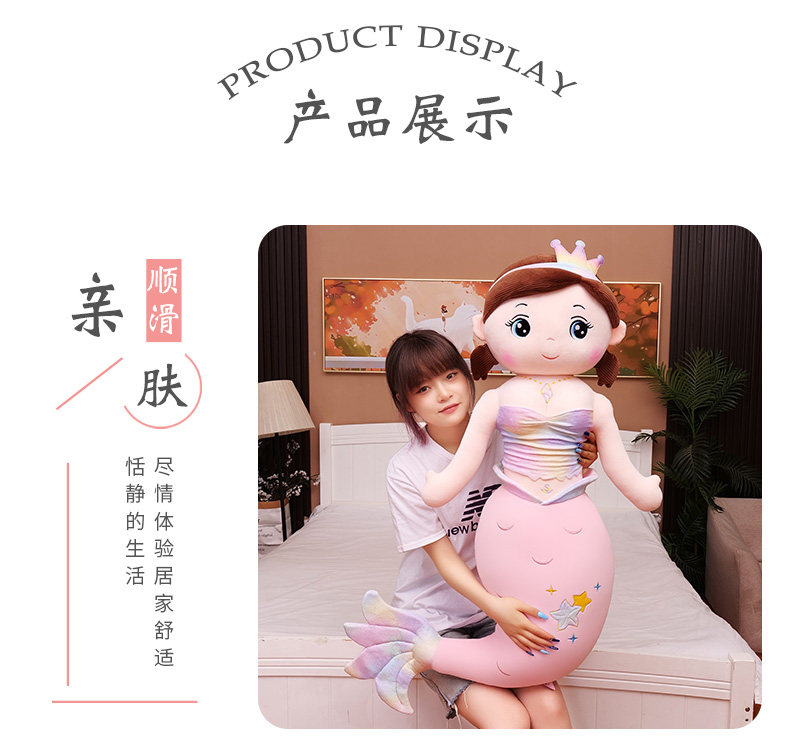 Милая подушка, успокаивающая тряпичная кукла, плюшевая большая игрушка для сна, русалка