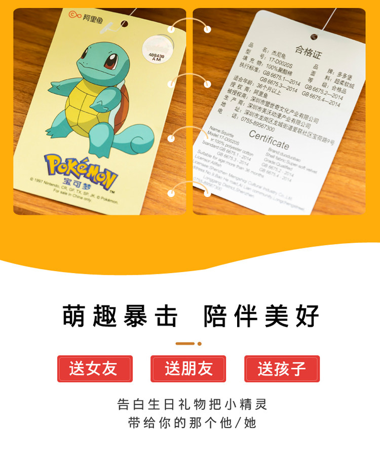 Мультяшная плюшевая игрушка, тряпичная кукла подходит для мужчин и женщин, покемон, подарок на день рождения