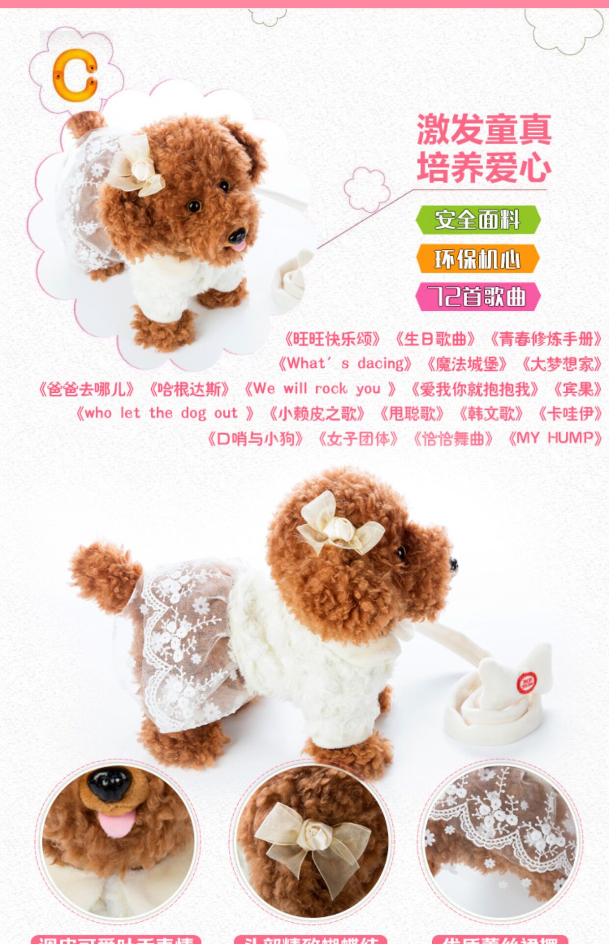 - 120 песен с USB -прямой зарядкой + ходьба + пение + корректировка громкости + обучение говорить