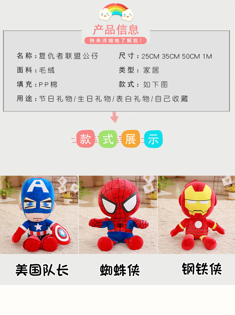 Плюшевая кукла, игрушка для мальчиков для сна, Марвел, паук, капитан Америка, Железный Человек, подарок на день рождения