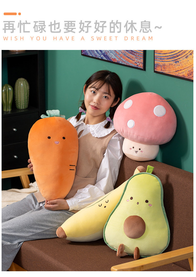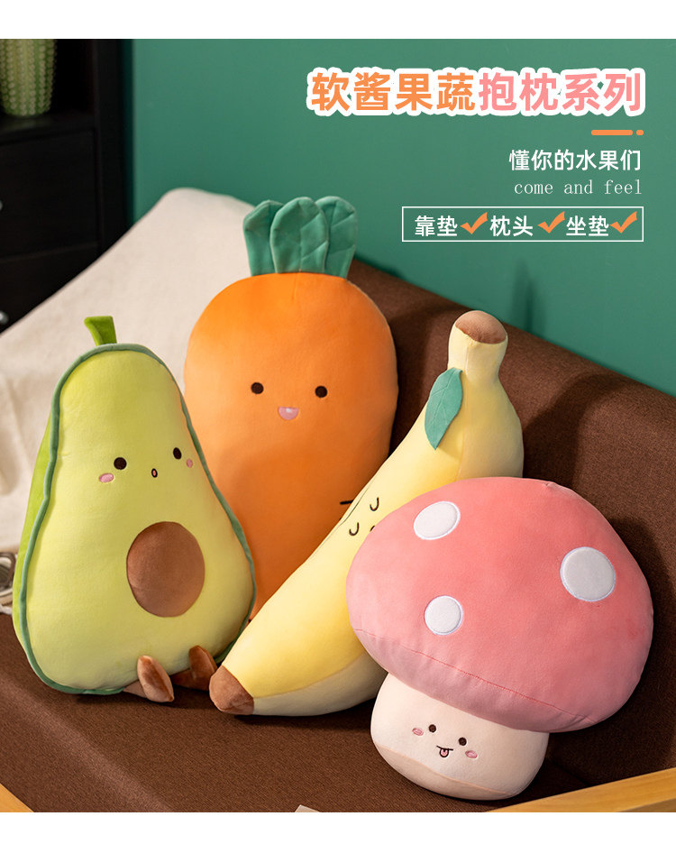 Реалистичное мультяшное фруктовое масло, плюшевая подушка, игрушка с грибочками-гвоздиками, морковная тряпичная кукла
