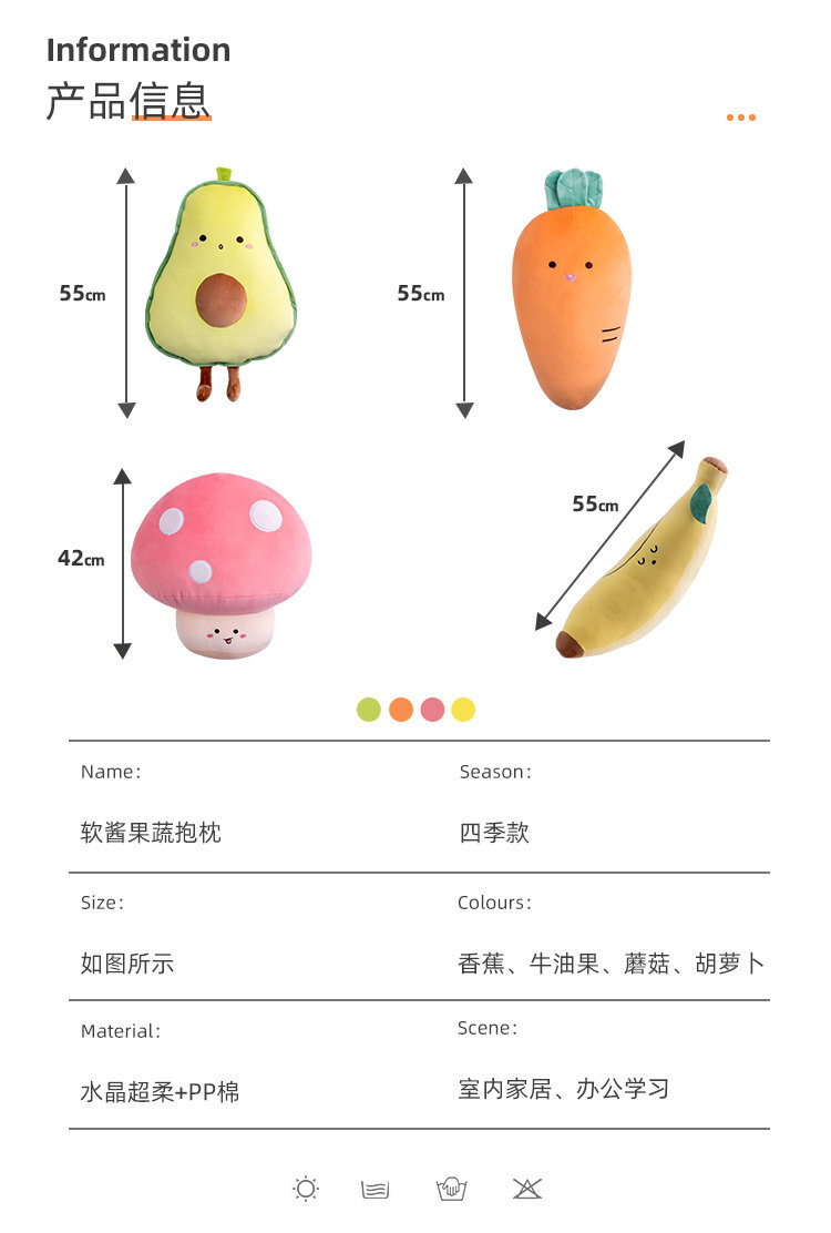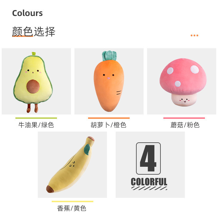 | Цвет: | Банан 55 см, Морковка 55 см, 42 см авокадо, Гриб 42 см |