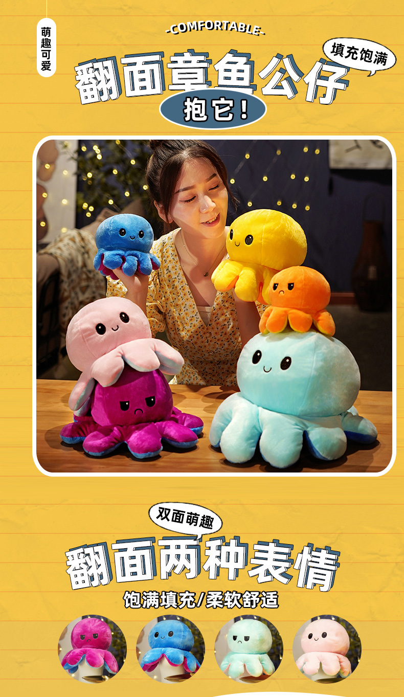 Двусторонная кукла для рыбалки, плюшевая игрушка, осьминог, подарок на день рождения