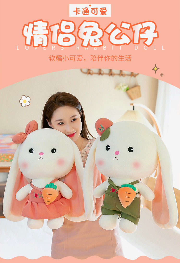 Морковный плюшевый кролик для влюбленных, игрушка, тряпичная кукла, детская подушка для обнимания, белый кролик