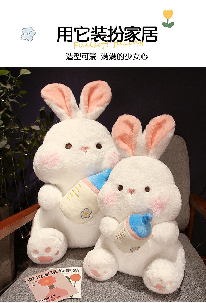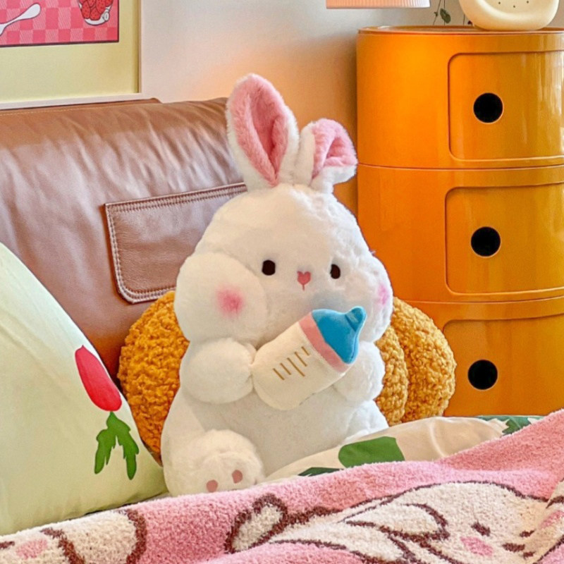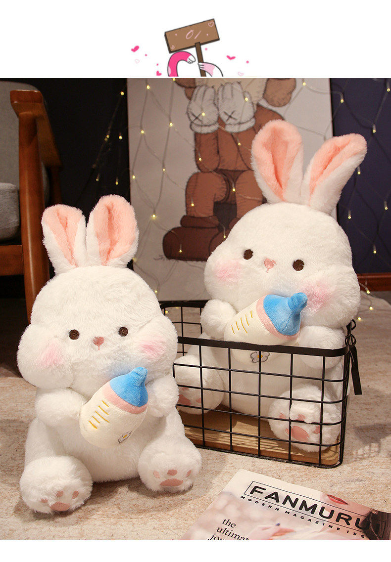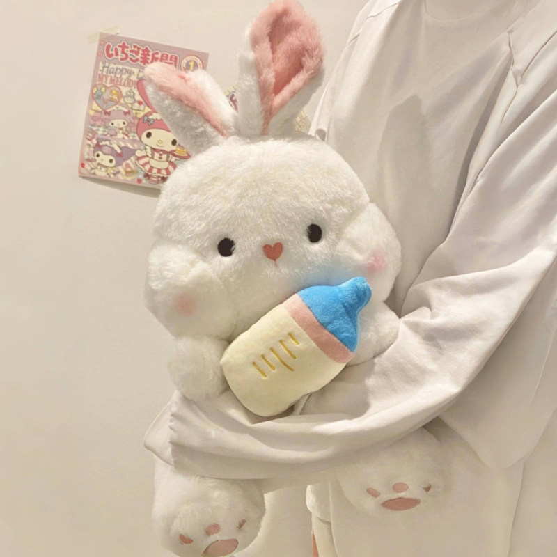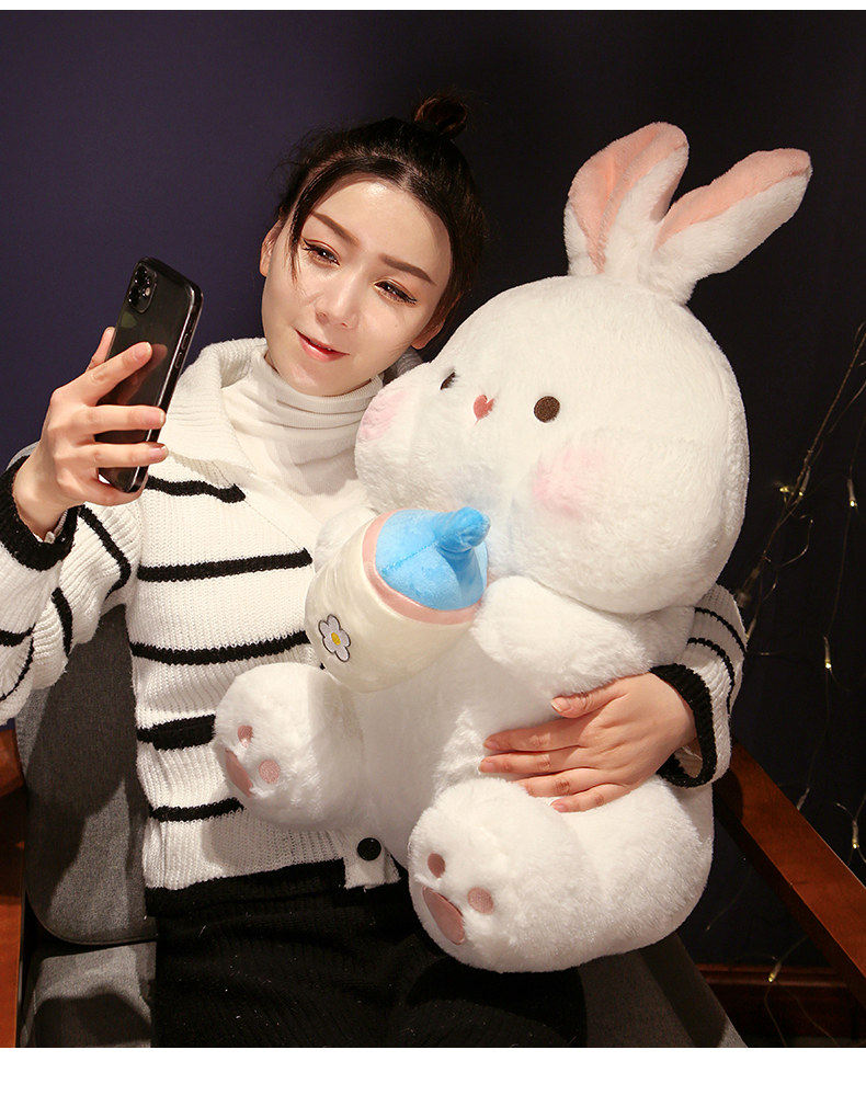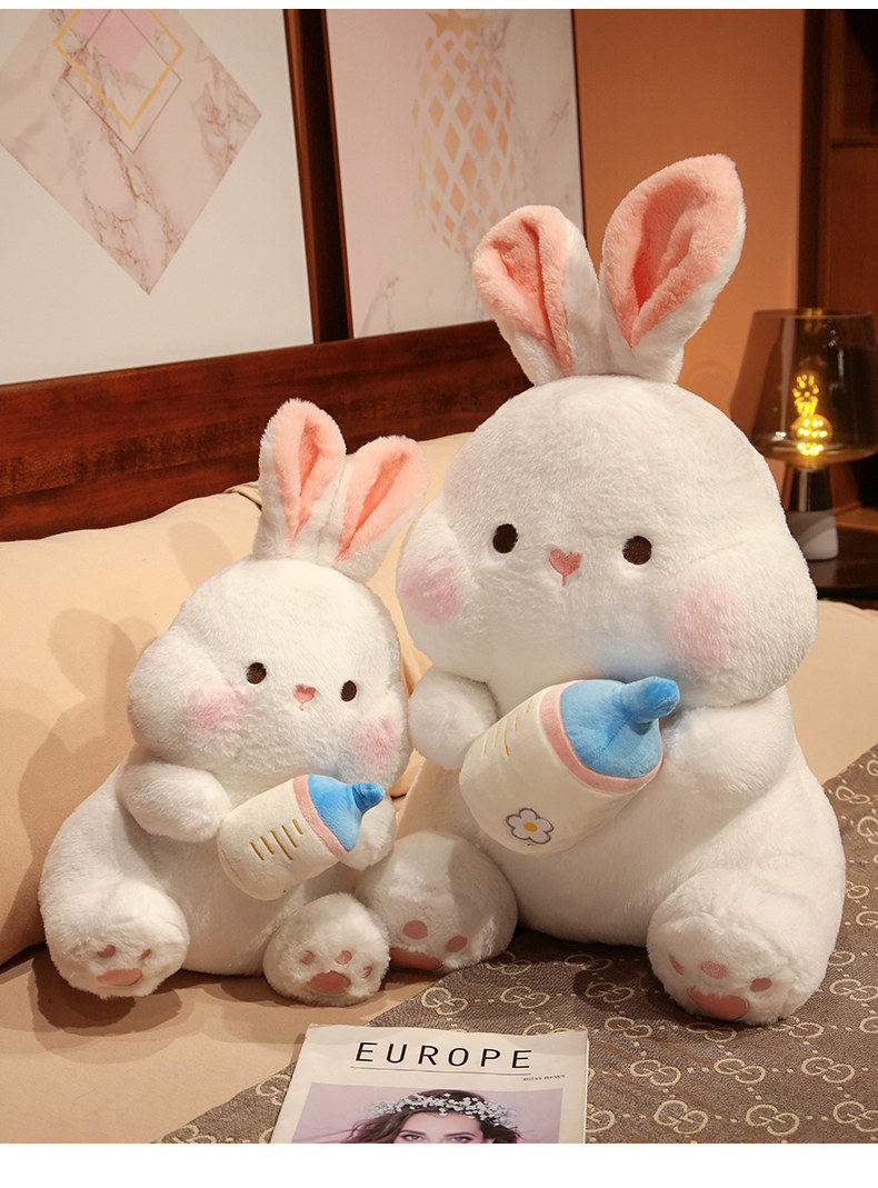 Плюшевая кукла, игрушка, милая бутылочка для кормления, успокаивающая подушка для сна, белый кролик, подарок на день рождения