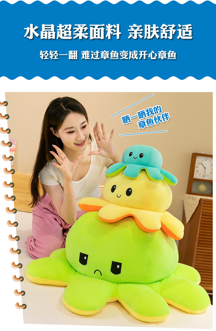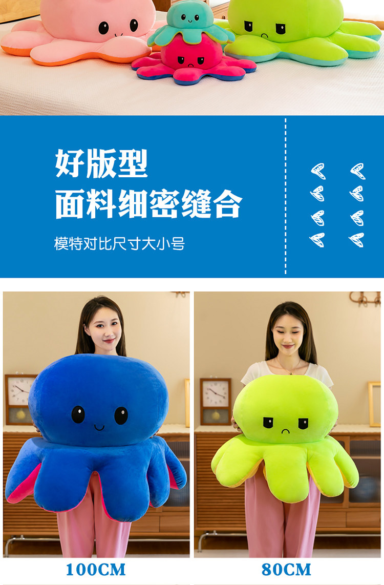 Большая двусторонная кукла, плюшевый шлем, игрушка, осьминог