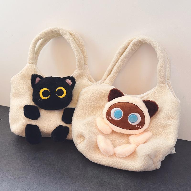 Плюшевый портативный шоппер для матери и ребенка для выхода на улицу, сумка на одно плечо, рюкзак, пенал, кот