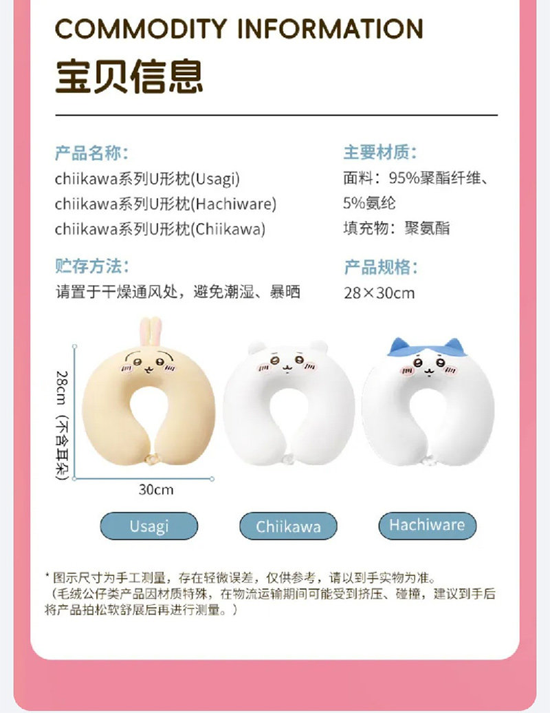 | Цвет: | U-образная подушка (Hachiware), U-образная подушка (USAGI), U-образная подушка (Chiikawa) |