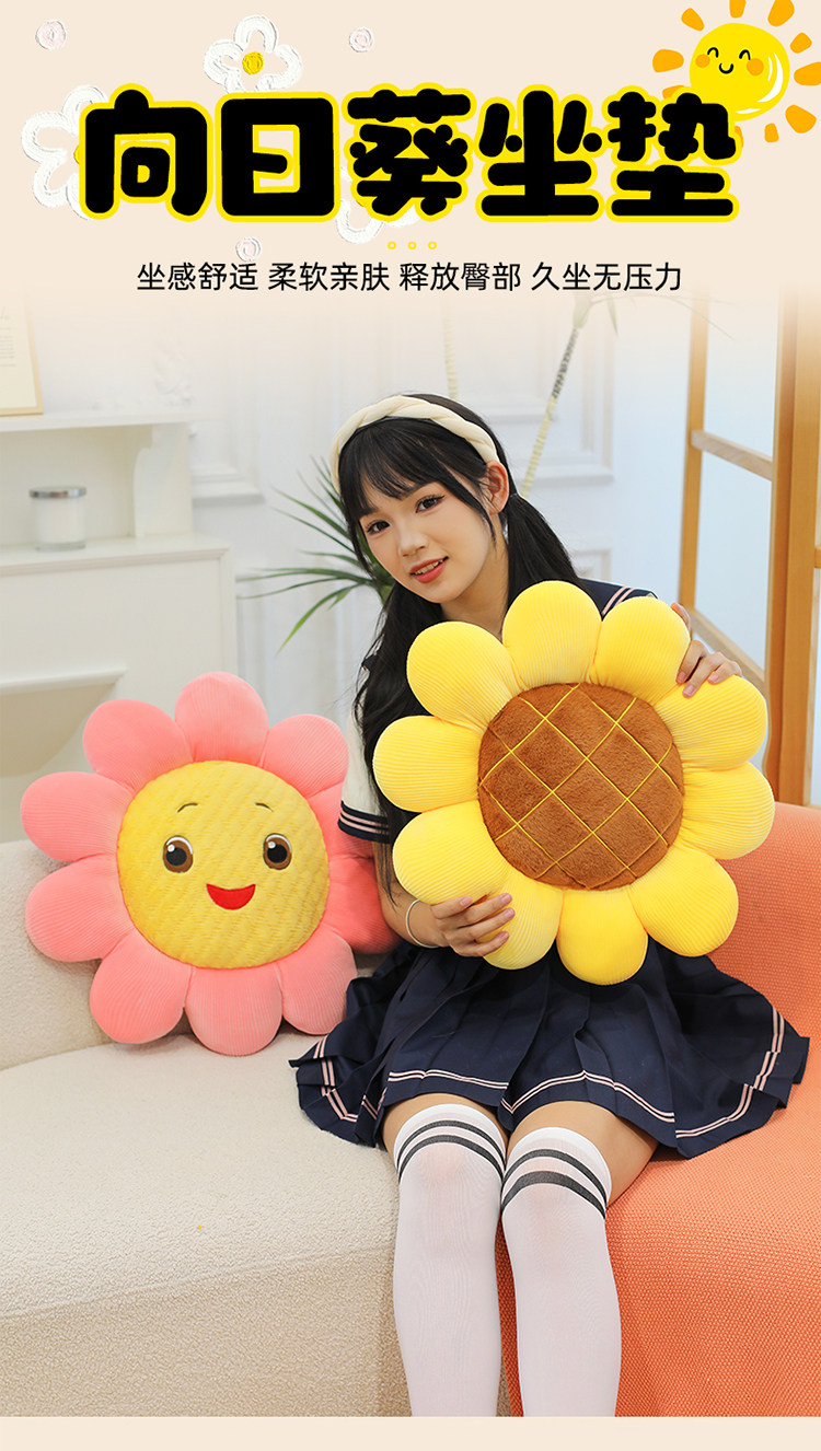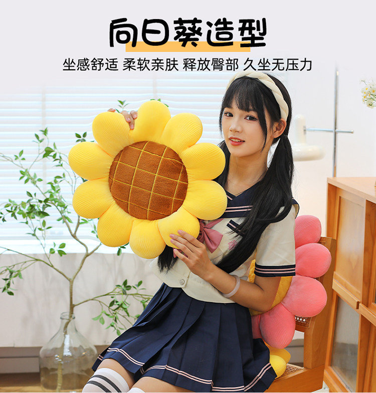 Подушка с подсолнухом, прикроватная подушка, нежная плюшевая подушка с подсолнухом, мягкий и милый футон, подушка для ягодиц татами