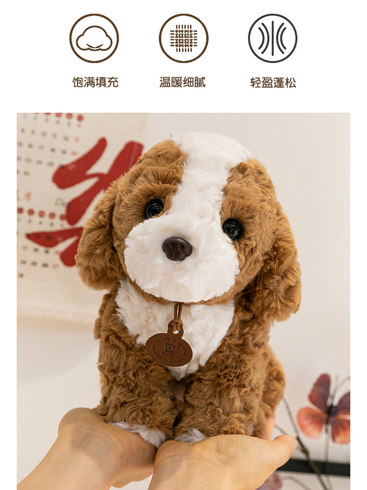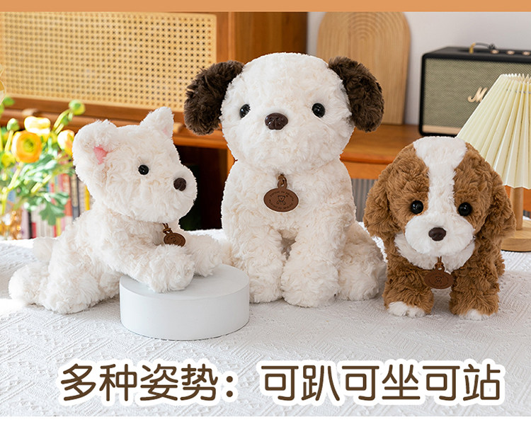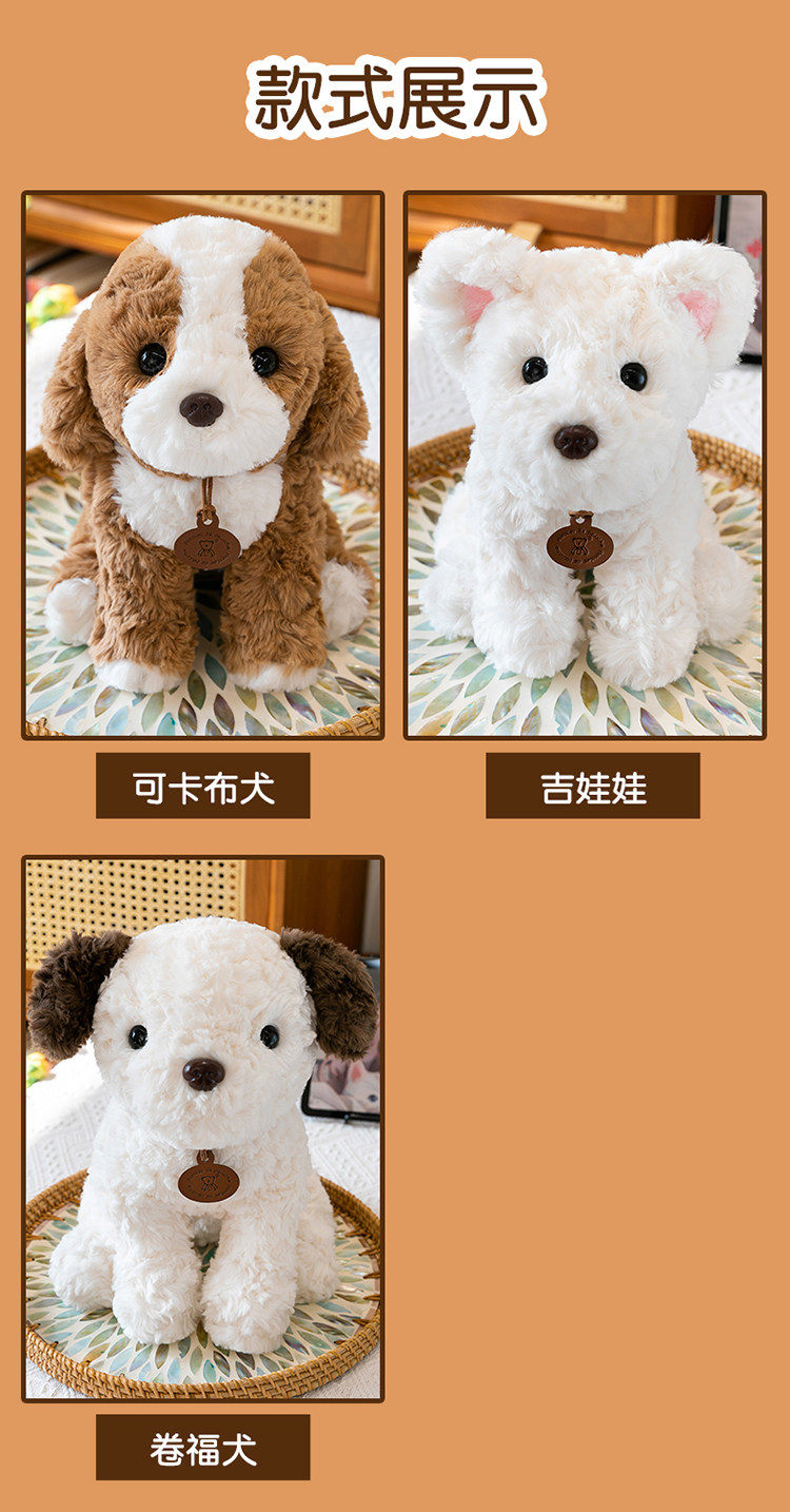 [正版三姿小狗狗公仔吉娃娃可卡布犬卷福犬安抚男女孩治愈系礼物狗]