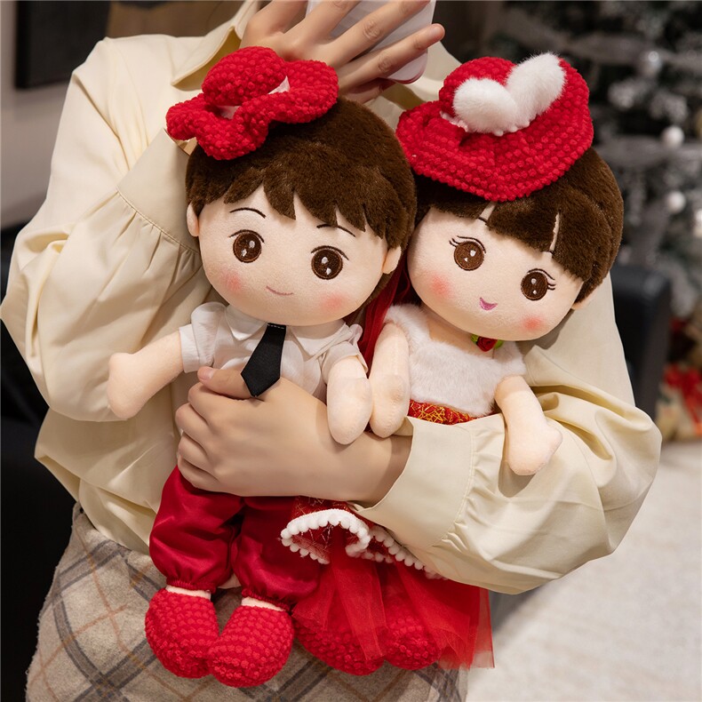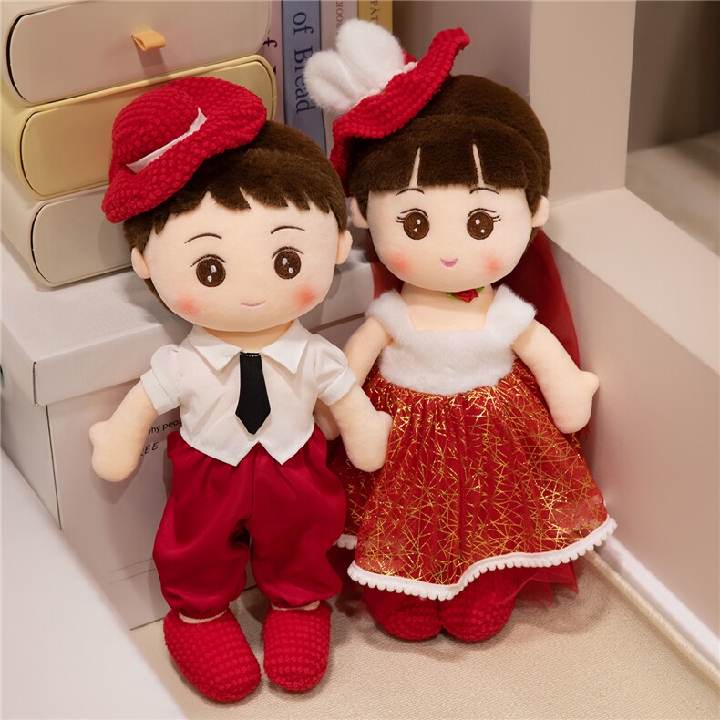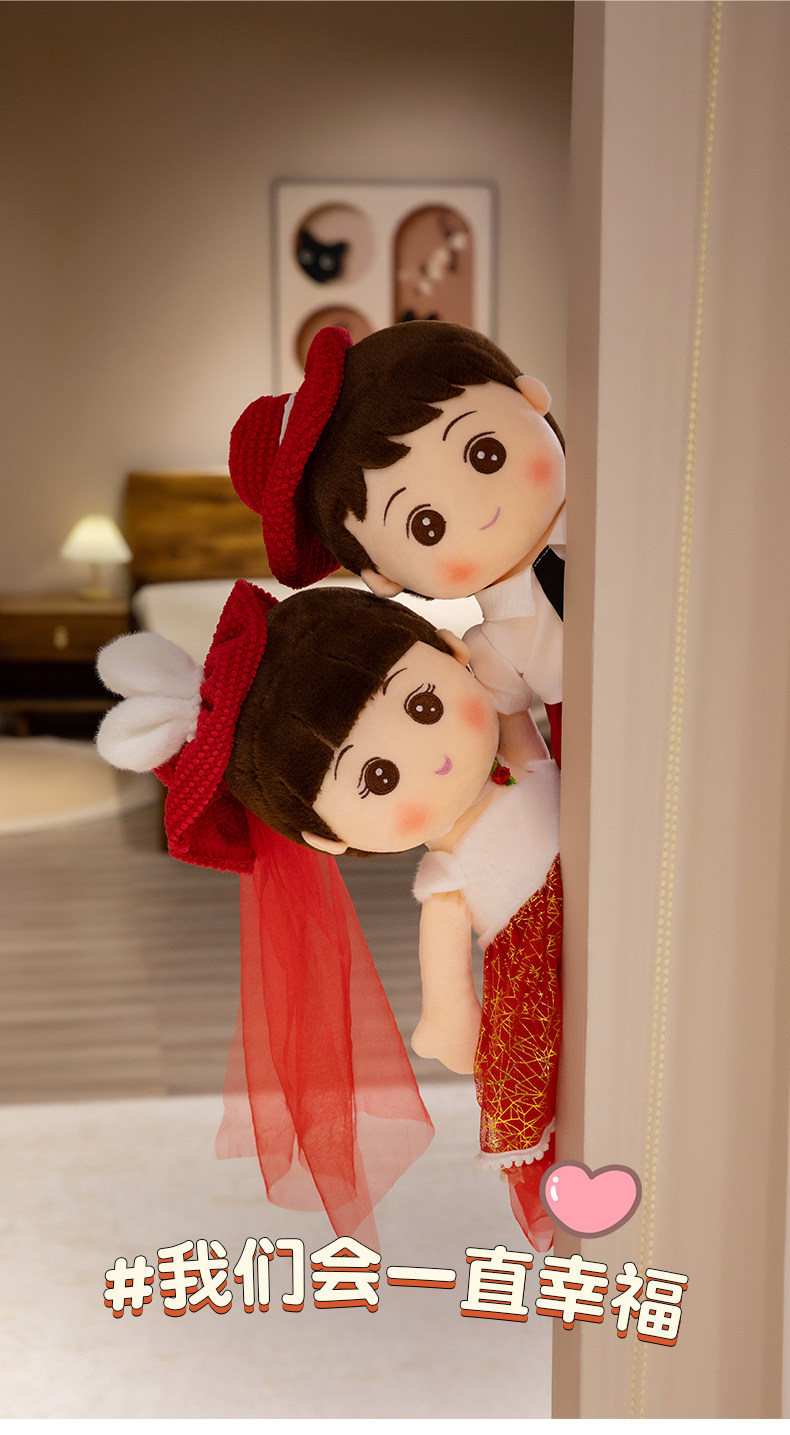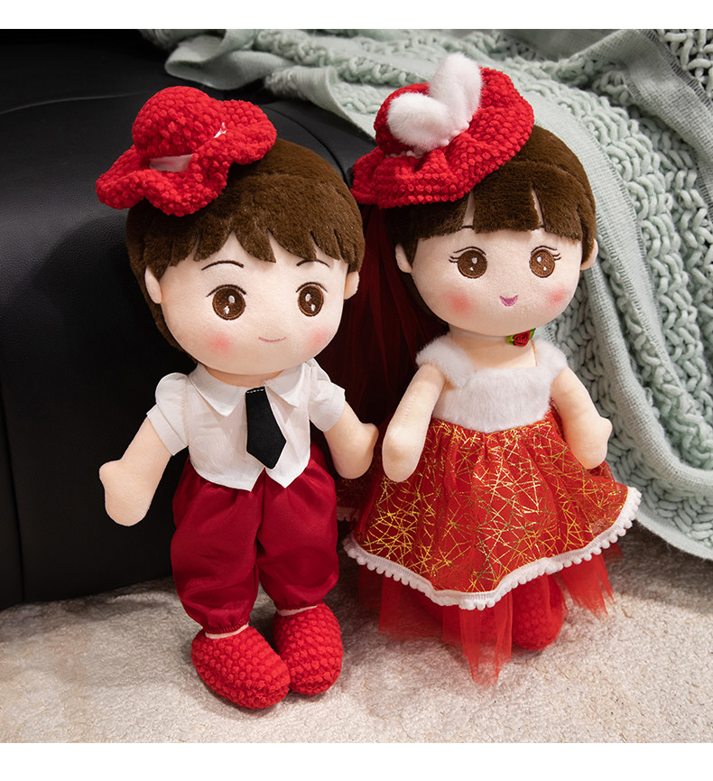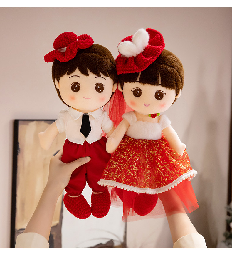 Пара свадебных кукол с новым стилем высококачественных свадебных кукол Golden Boy и Jade Girl с куклами и свадебными куклами в свадебной комнате в главной спальне
