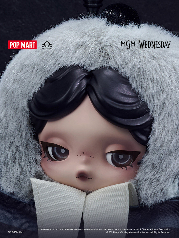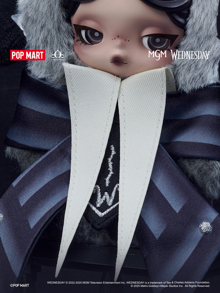 Подвеска в виде плюшевой куклы Bubble Mart SKULLPANDA × Wednesday (версия униформы колледжа Нефермур)