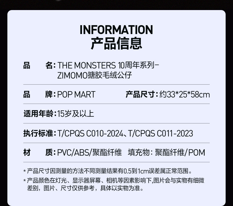 | Характеристики продукта: | Виниловая плюшевая кукла ZIMOMO из серии THE MONSTERS, посвященная 10-летию |