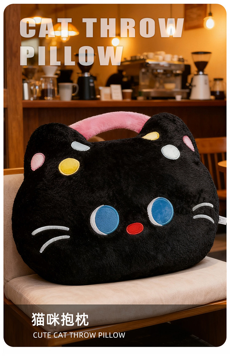 Черная подушка, плюшевая игрушка, детская тряпичная кукла для друга, кот, подарок на день рождения