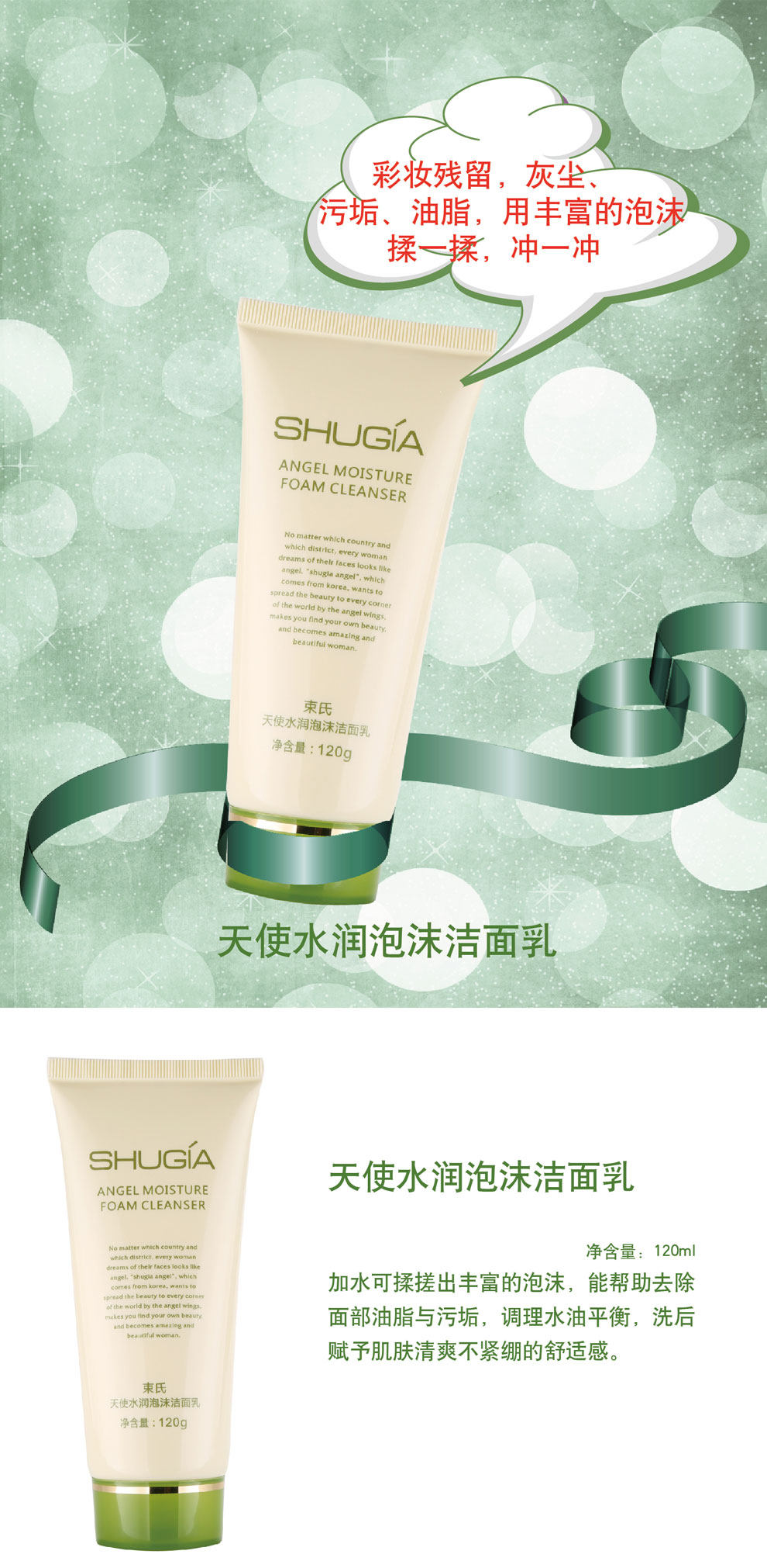 Эффект продукта: добавление воды может привести к богатой пене, которая может полностью помочь удалить масло и грязь на лице, регулировать баланс воды и масла и придать коже освежающее и не жесткое ощущение после промывки.