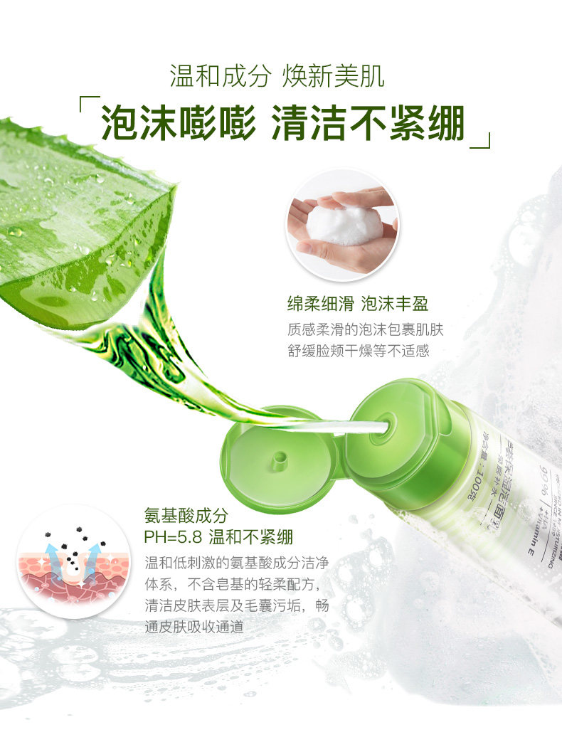 Увлажняющий гель алоэ вера, очищающее молочко на основе аминокислот, глубокое очищение, контроль жирного блеска, сужает поры