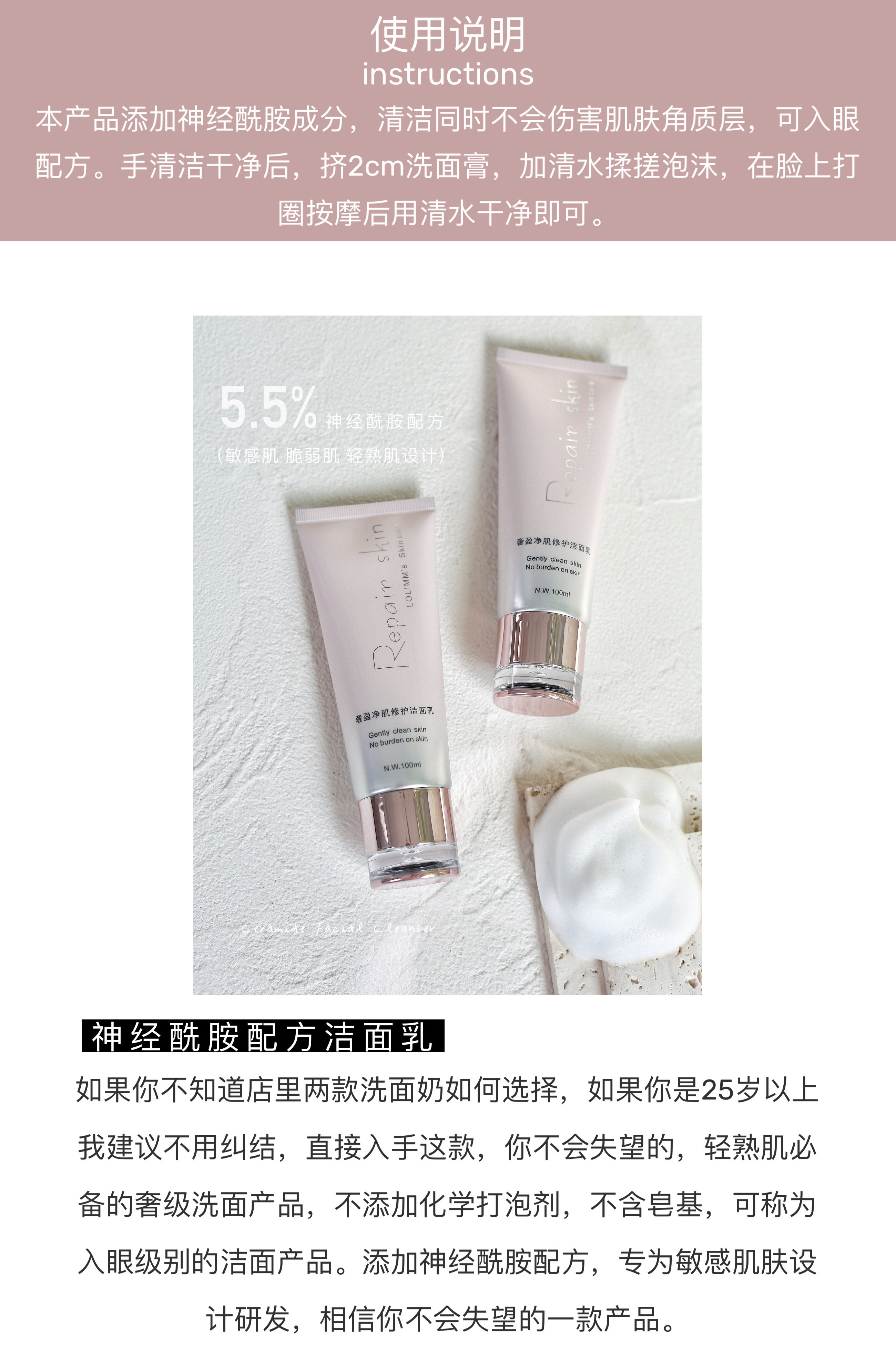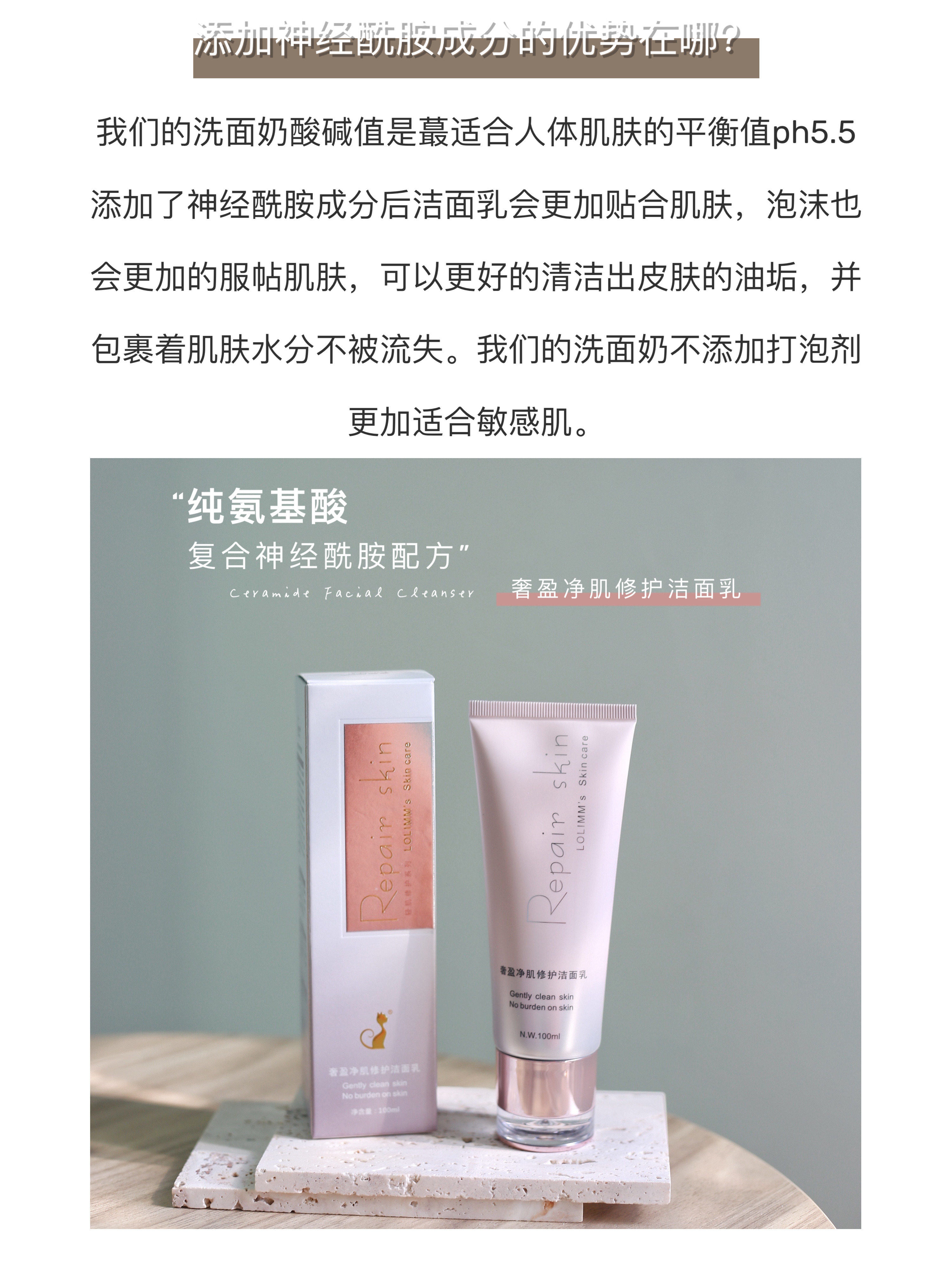 Очищающее молочко на основе аминокислот для чувствительной кожи подходит для мужчин и женщин, керамид, глубокое очищение