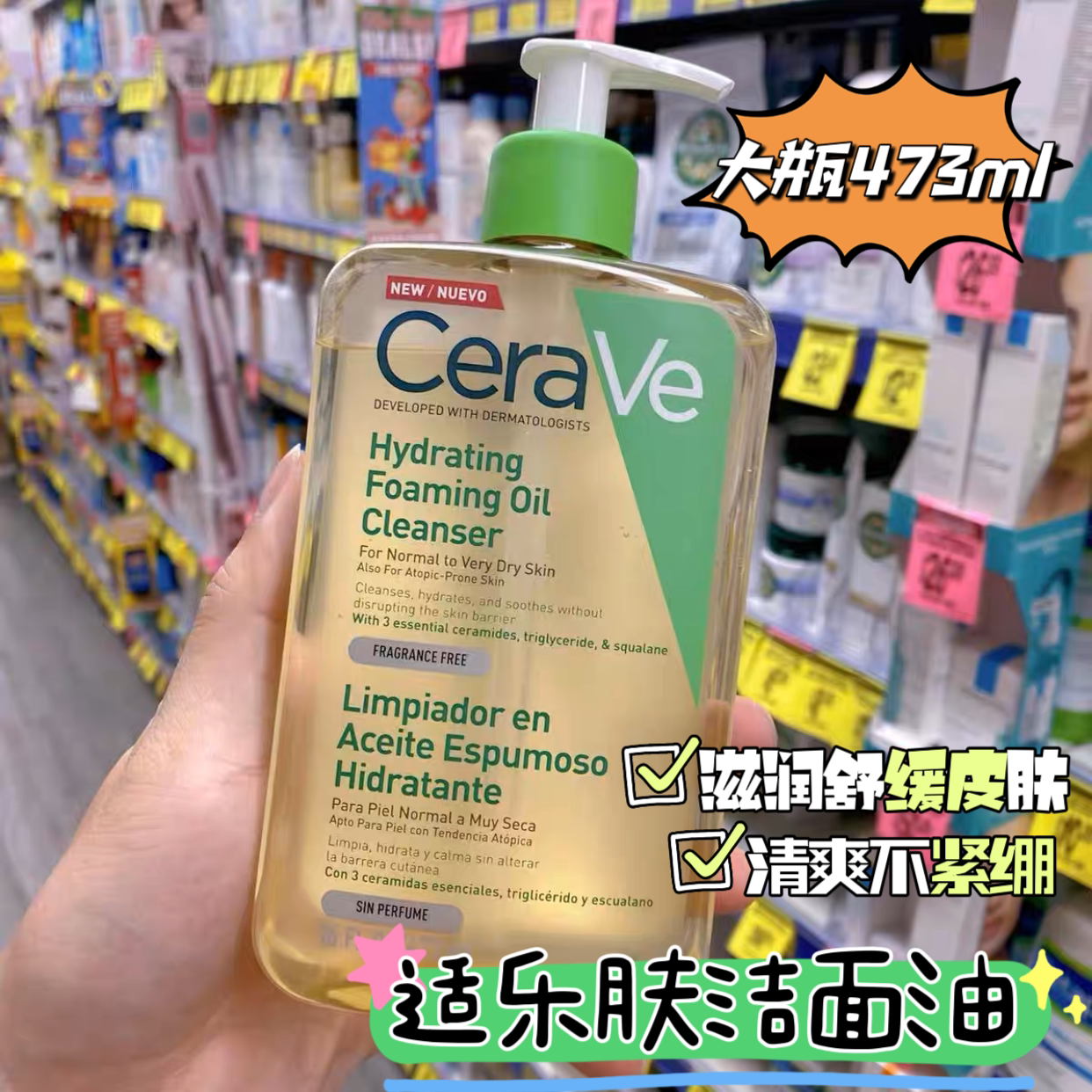 Cerave, очищающее молочко, очищающее масло с глицерином, керамид, 473 мл