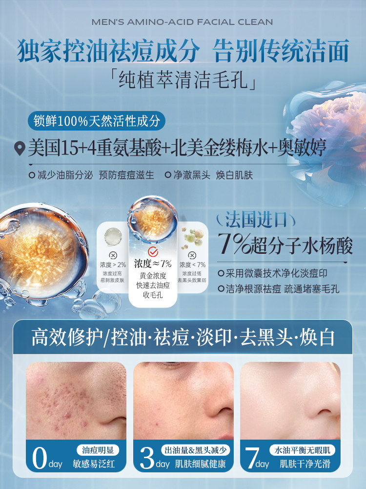 Мужское очищающее молочко, освежающее масло для удаления угрей на основе аминокислот, контроль жирного блеска, анти-акне, официальный продукт