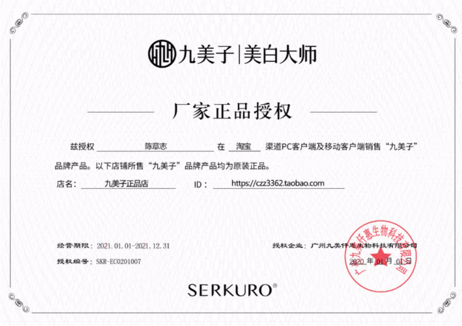 Продавец:九美子正品店