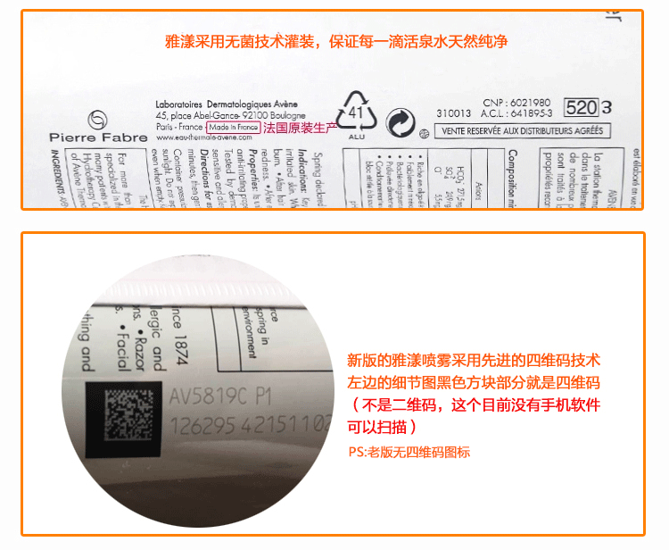 Относительно проблемы с большой версией спрея: В настоящее время на рынке имеется несколько версий Avène Spray (европейская и американская версия с 2 строками шрифта) (Последняя азиатская версия с 4 строками шрифта) (Азиатская версия с 6 строками шрифта)