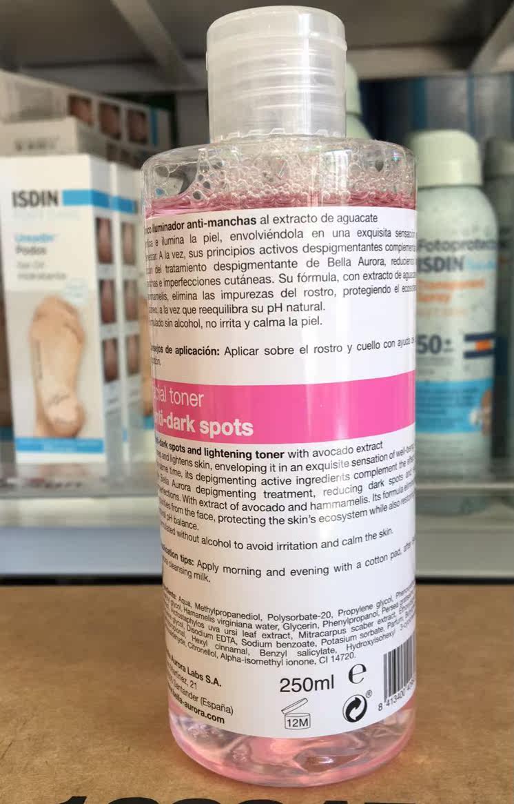 Испанская Белла Аврора Бая Охрра Небольшая порошковая вода Анти -пятна авокадо освежает 250 мл