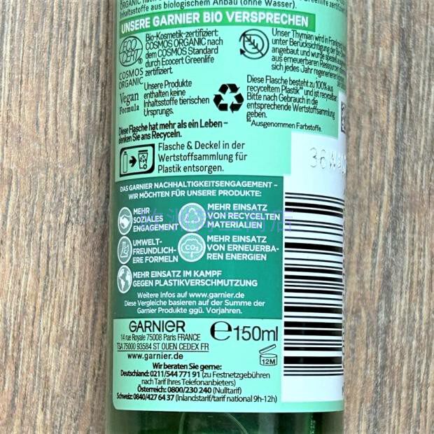 Французский Garnier Bio Thyme Perfecting Toner Organic Baili Siangye Petroariac Новый продукт