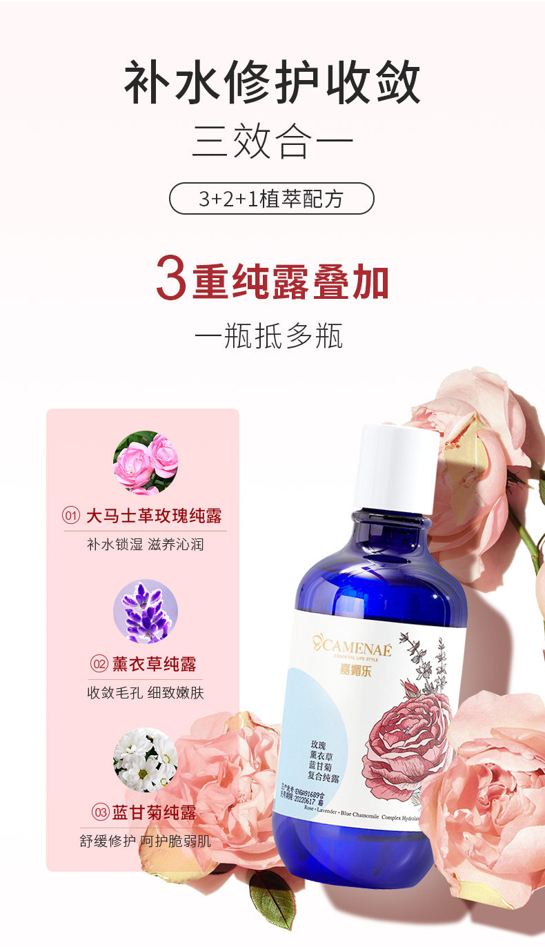 Лавандовая ромашка с камелией с розой в составе, увлажняющий гидролат, тонер, сужает поры