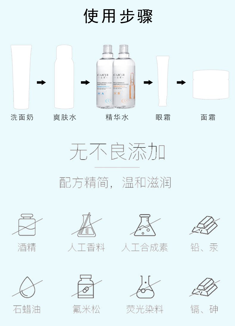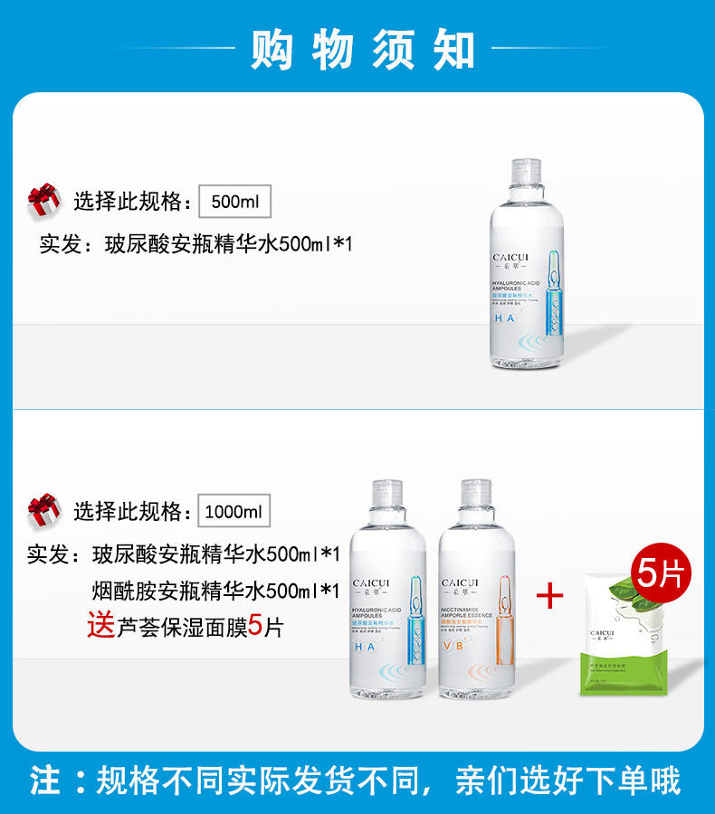 采萃 Эссенция с гиалуроновой кислотой содержит никотиновую кислоту в ампулах, увлажняющий тонер, восстанавливающий разглаживающий спрей подходит для мужчин и женщин