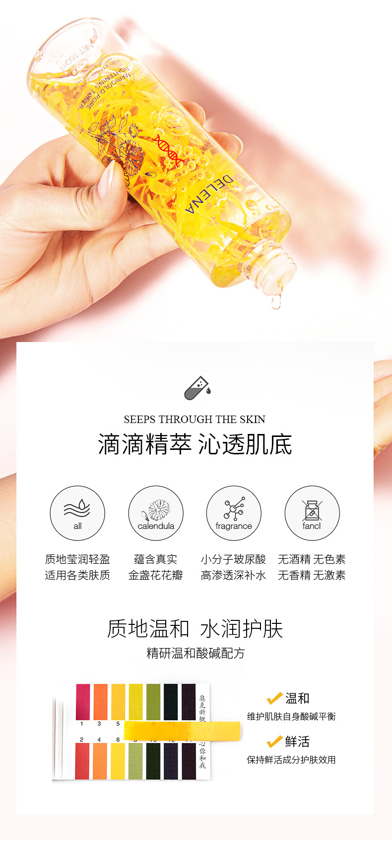 蝶莲娜 Разглаживающий омолаживающий восстанавливающий увлажняющий успокаивающий тонер c календулой с экстрактом растений, сужает поры