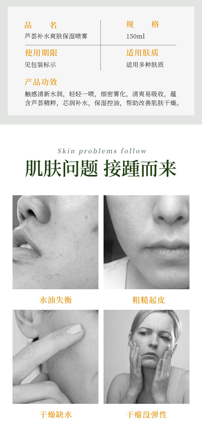 Увлажняющий гель алоэ вера, тонер, освежающий питательный спрей, контроль жирного блеска