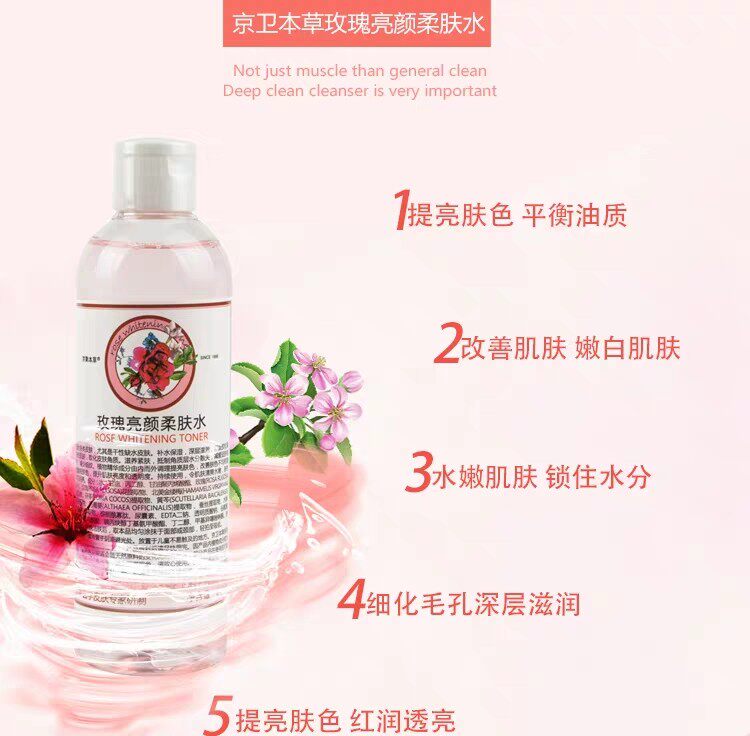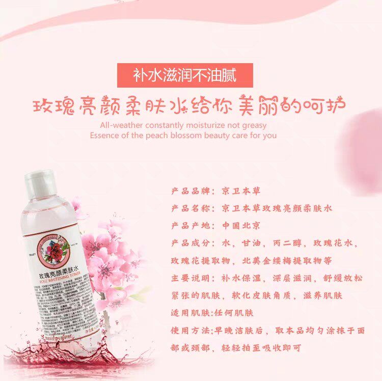 京卫本草 Увлажняющий осветляющий разглаживающий тонер с розой в составе, осветляет кожу